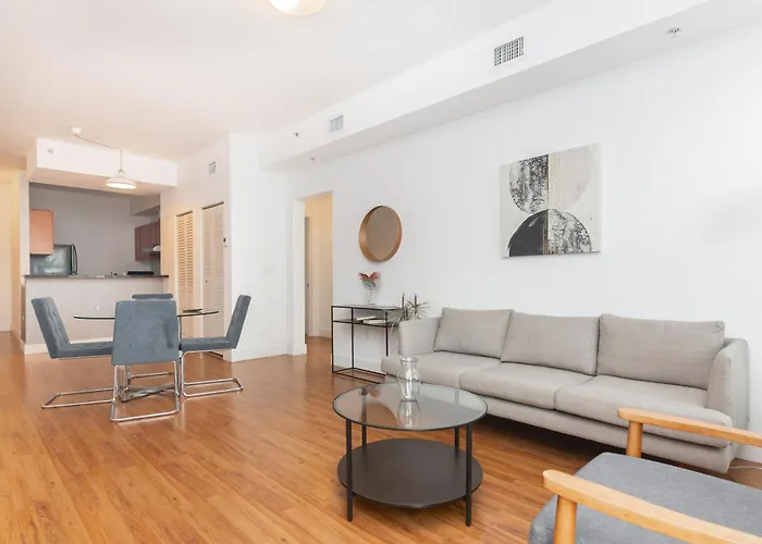 Miami Downtown 2 Bedroom Apartment is equipped with self-catering facilities, including a kitchen with a fridge, an oven, and glassware. This apartment is a few steps from the nearest bus stop Northeast 2nd Avenue & Northeast 15th Street.